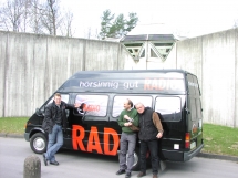 Einige 100 Sendungen sind im Laufe der Zeit zusammen gekommen. Einige 100 km habe ich LIVE von den Straßen der Stadt gesendet. Im Sticker-Rallye-Auto wurden hoffnungsfrohe Hörer verfolgt, gestoppt und mit 100 Euro belohnt … wenn sie denn einen Aufkleber auf der Heckscheibe plaziert hatten.