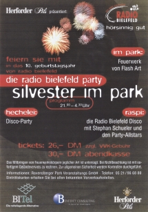 Seit der größten Silvesterparty aller Zeiten in Bielefeld – zum Milleniumswechsel mit 40.000 vor der Showbühne an der Kunsthalle und Livesendung – feierte ich bis 2018 regelmäßig mit den Hörern die RADIO BIELEFELD Silvester-Party in der Ravensberger Spinnerei.